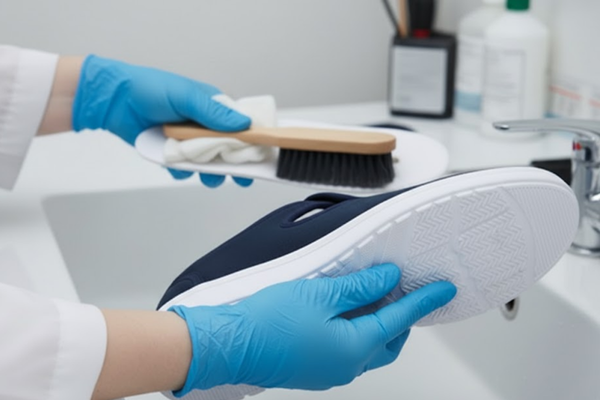 Cách làm: Tháo lót giày ra ngoài. Ngâm lót giày trong nước ấm pha xà phòng hoặc nước giặt nhẹ. Chà nhẹ nhàng và xả sạch.