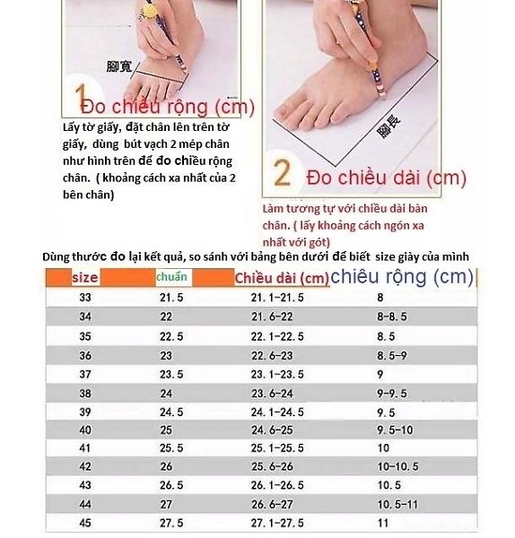 Ưu tiên giày có nhiều size, bảng size rõ ràng, hoặc hỗ trợ đổi trả.